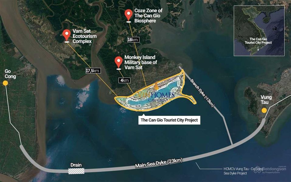 ✿ Vị trí “giao thoa” giữa rừng nguyên sinh – biển – đô thị: tiếp giáp khu rừng ngập mặn Cần Giờ (UNESCO), biển Đông, Biển Hồ nhân tạo … → môi trường sống và nghỉ dưỡng hiếm có.
